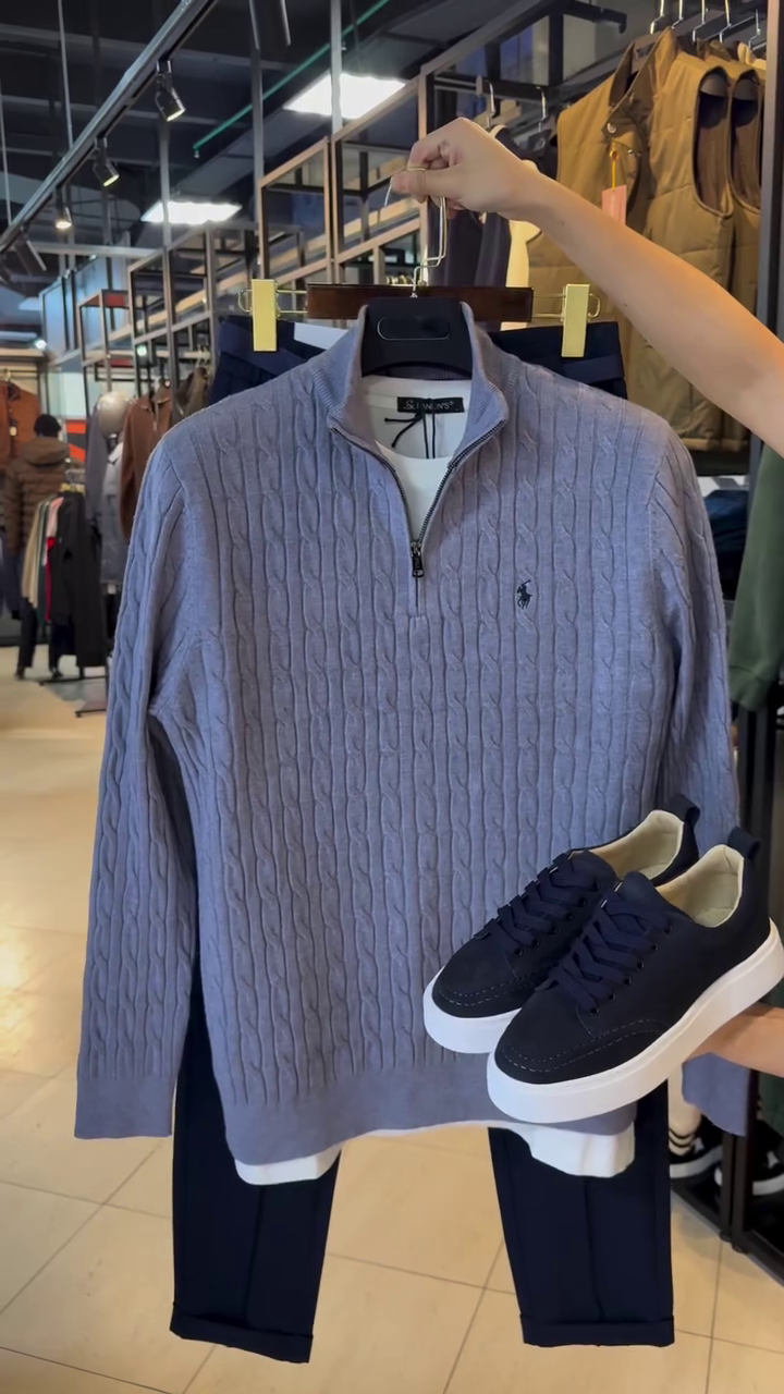 The Quarter-Zip Placket: It usually features a concealed zipper with a tonal fabric binding, topped with a metal slider that is often engraved with “Polo” or the brand’s logo.