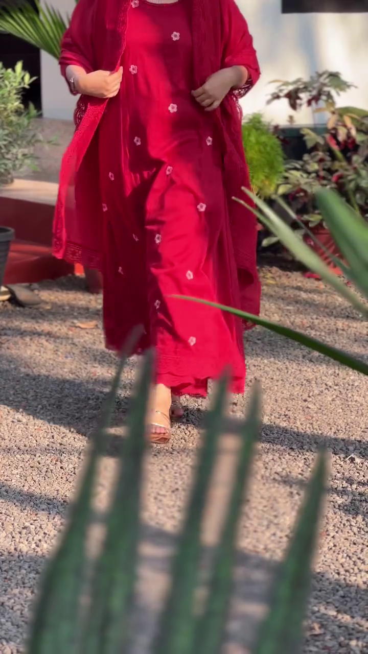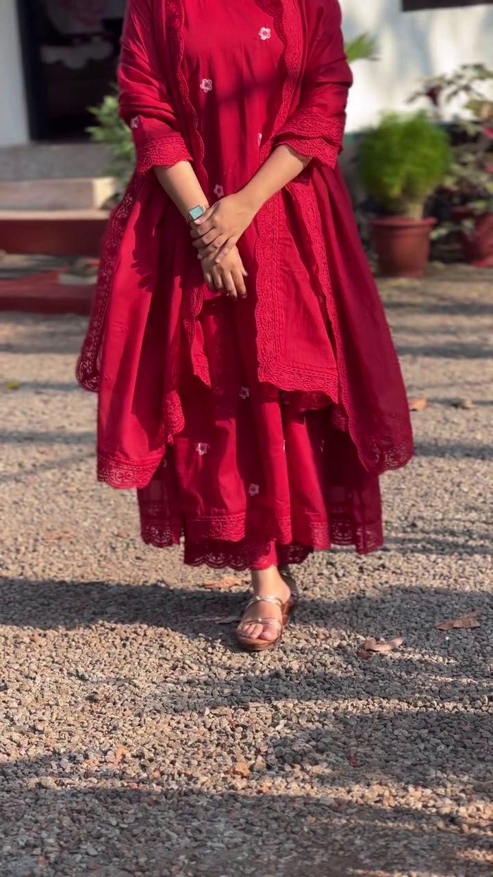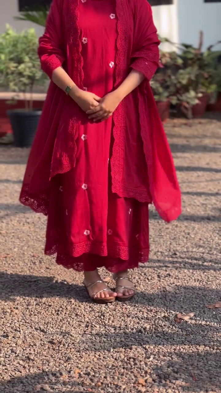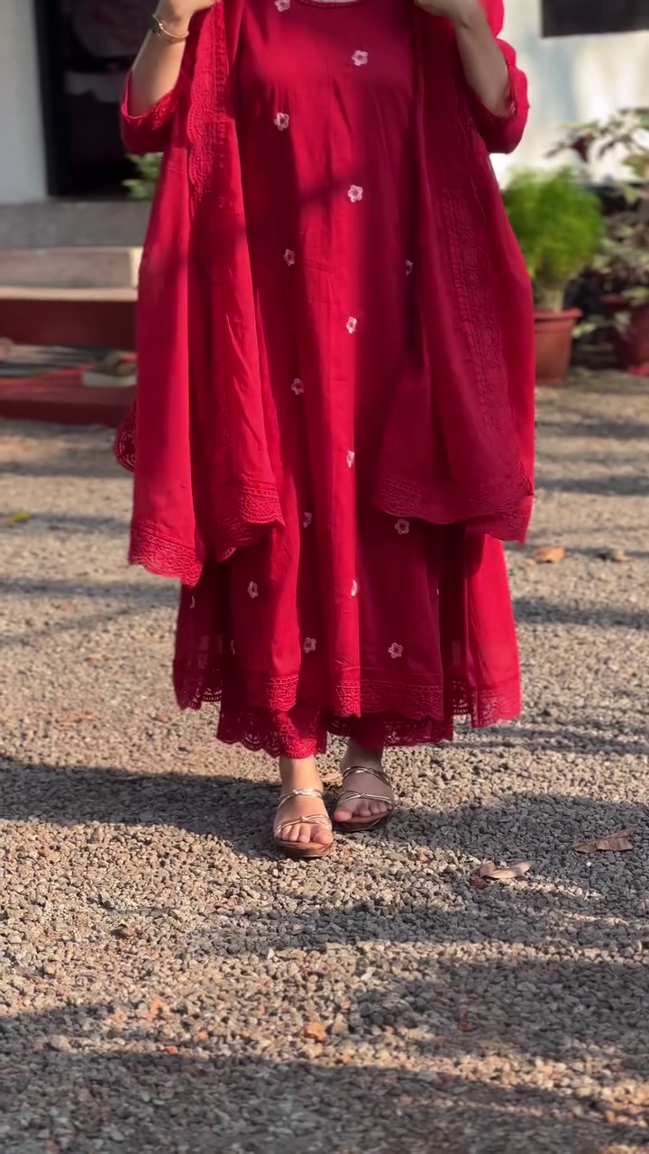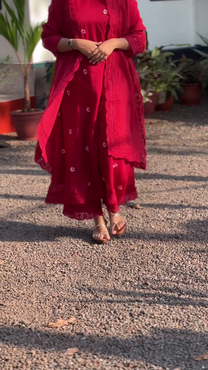+ Free ShippingRed embroidered Kurta with Trousers with dupatta