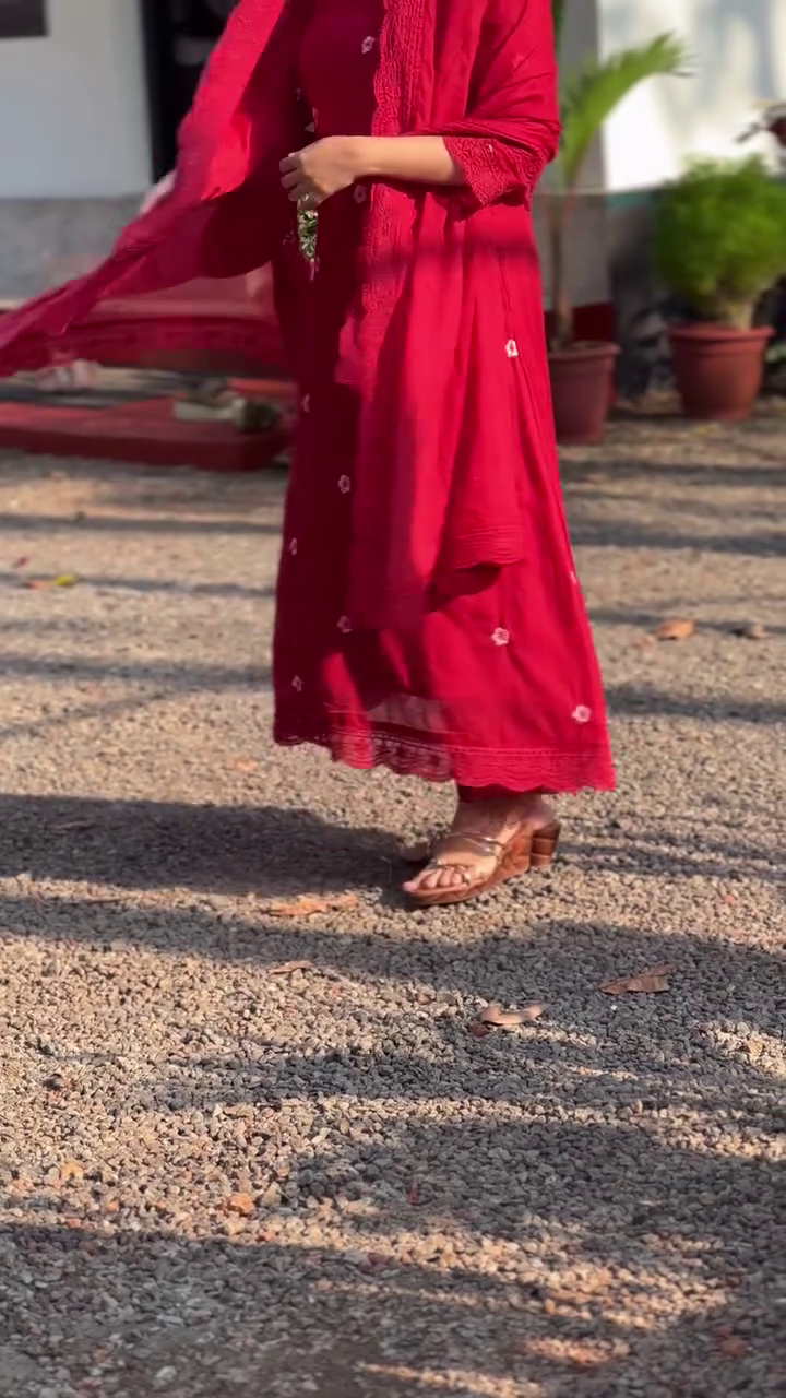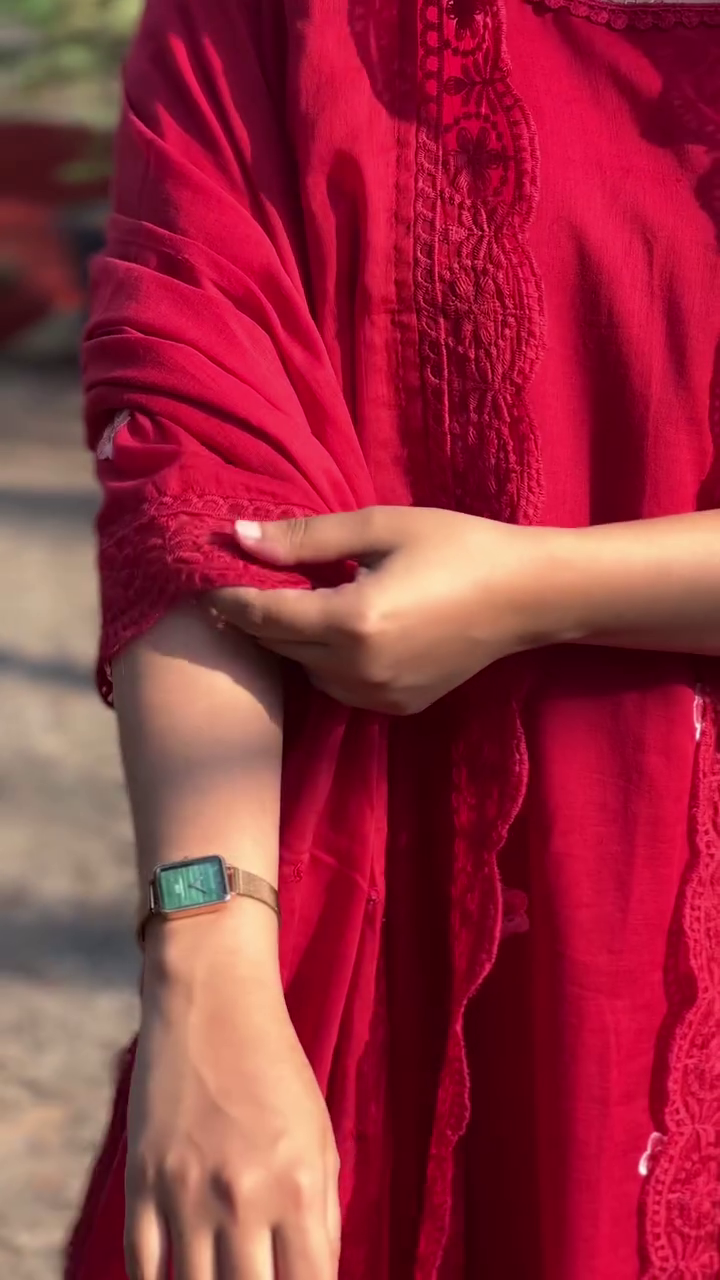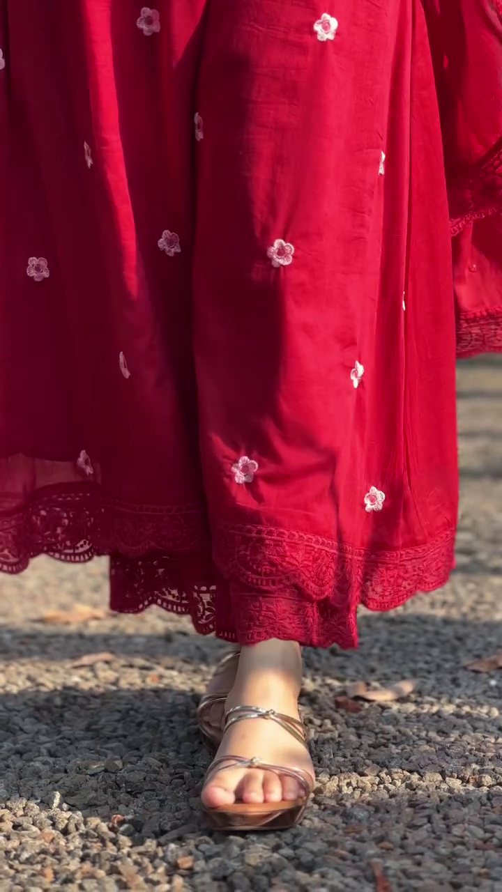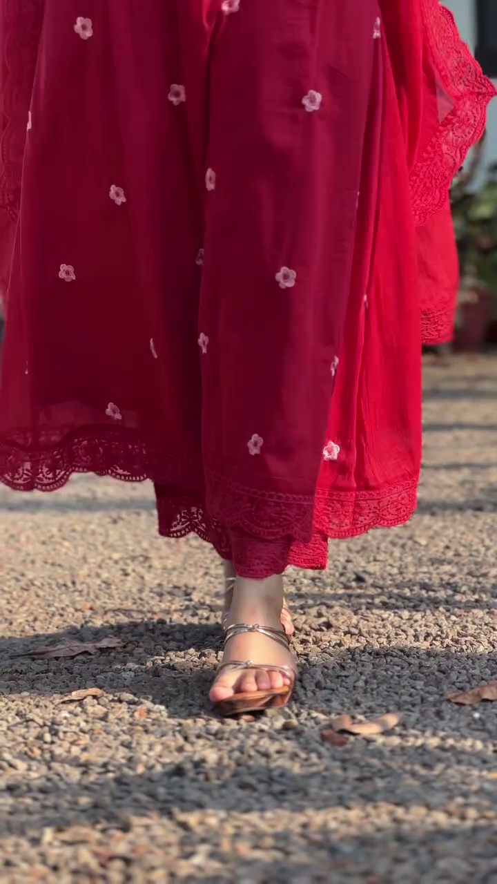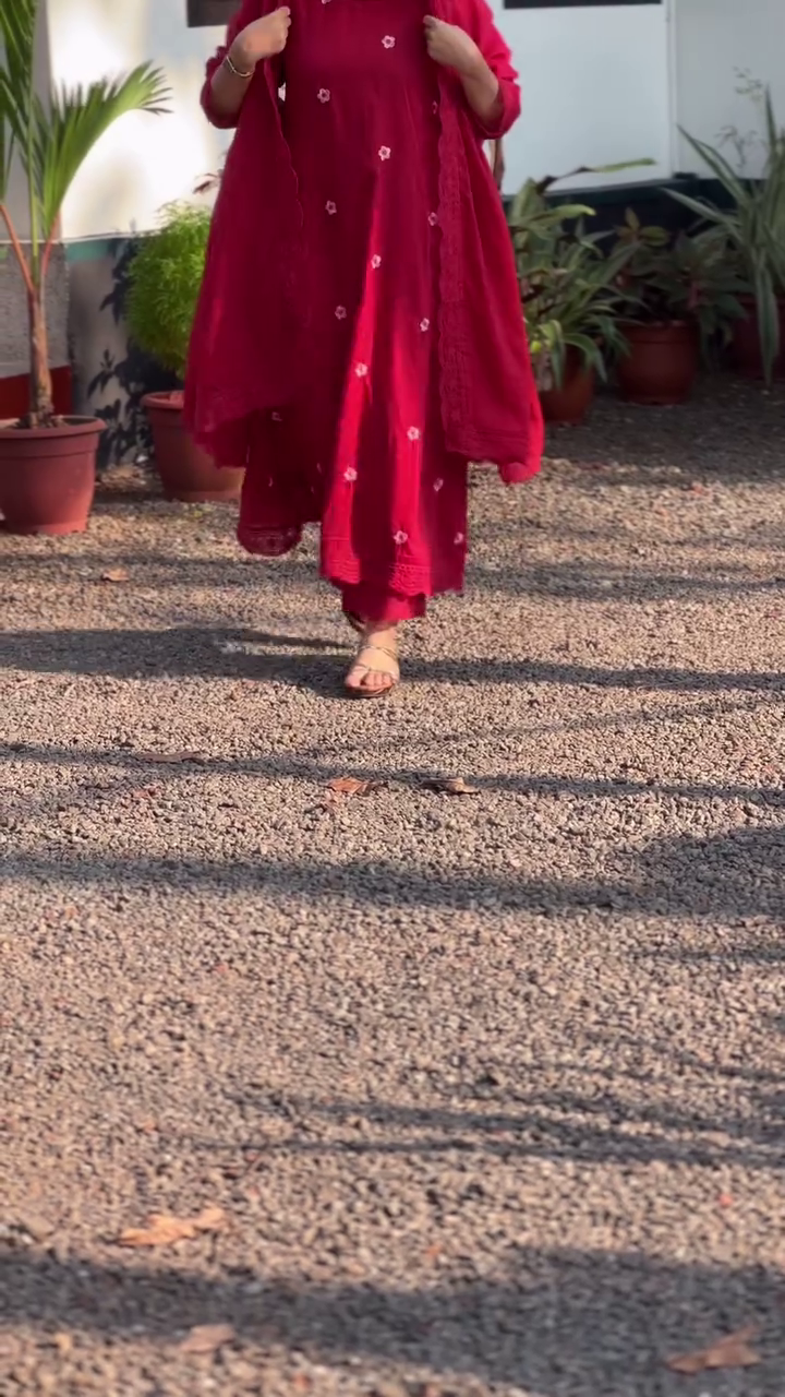 + Free ShippingRed embroidered Kurta with Trousers with dupatta
