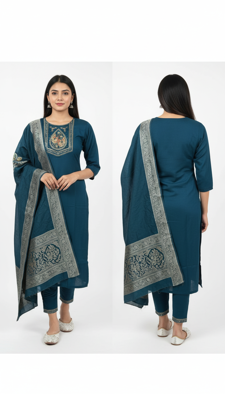 The kurta set is made from high-quality rayon, offering a perfect combination of comfort, drape, and durability:
