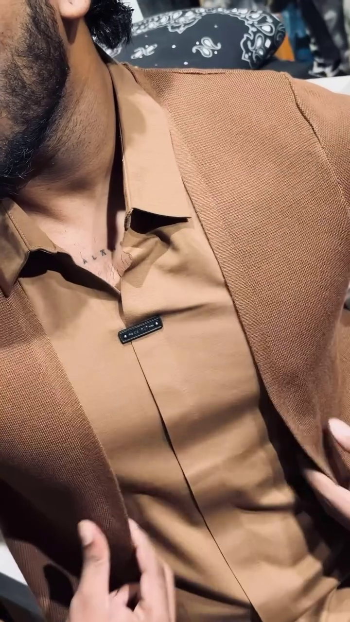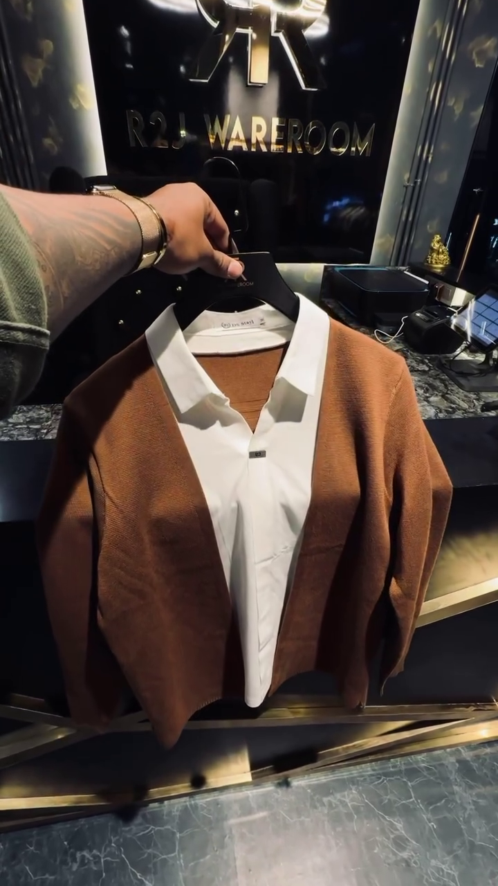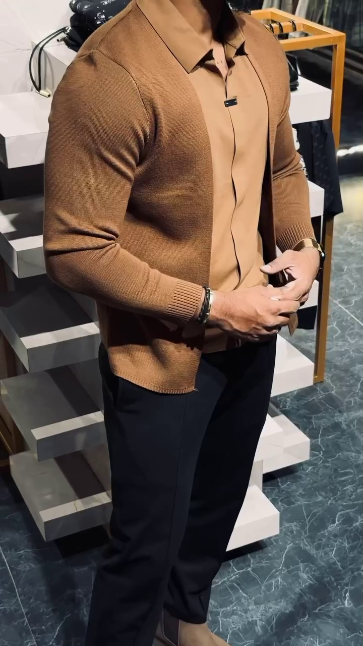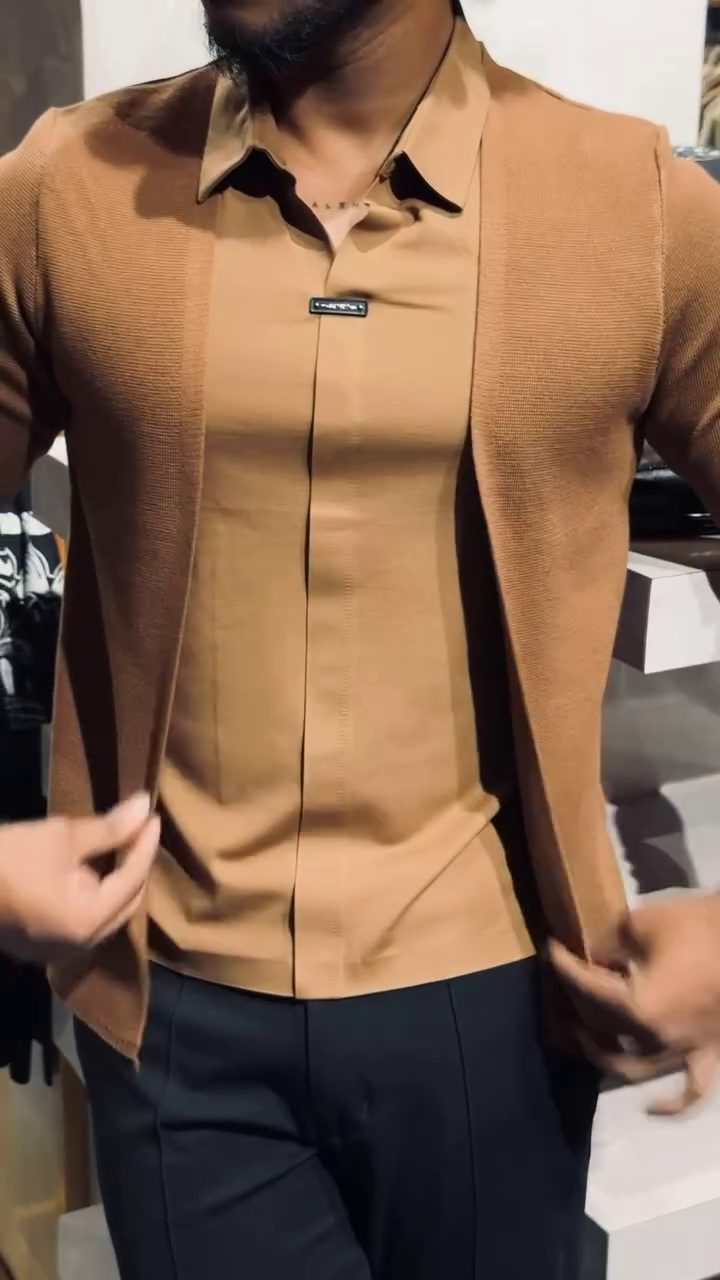 Upgrade your wardrobe with this men’s slim-fit layered knit shirt, designed to deliver a sleek and contemporary look. Featuring an integrated open-front cardigan style over a structured shirt base, this piece creates a refined layered effect without added bulk. Crafted from soft, breathable knit fabric, it offers a comfortable fit with a smooth finish that enhances the silhouette. Perfect for evening outings, parties, or smart-casual occasions, this statement piece pairs effortlessly with tailored trousers or denim.