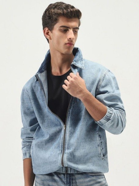 The Washed Solid Denim Jacket is the gold standard of “effortless cool.” Unlike a raw, stiff denim jacket that feels like armor, the “Washed” process involves pre-laundering the garment with stones or enzymes. This breaks down the fibers, resulting in a jacket that feels broken-in from day one—soft to the touch, with a relaxed drape and a matte, lived-in color.