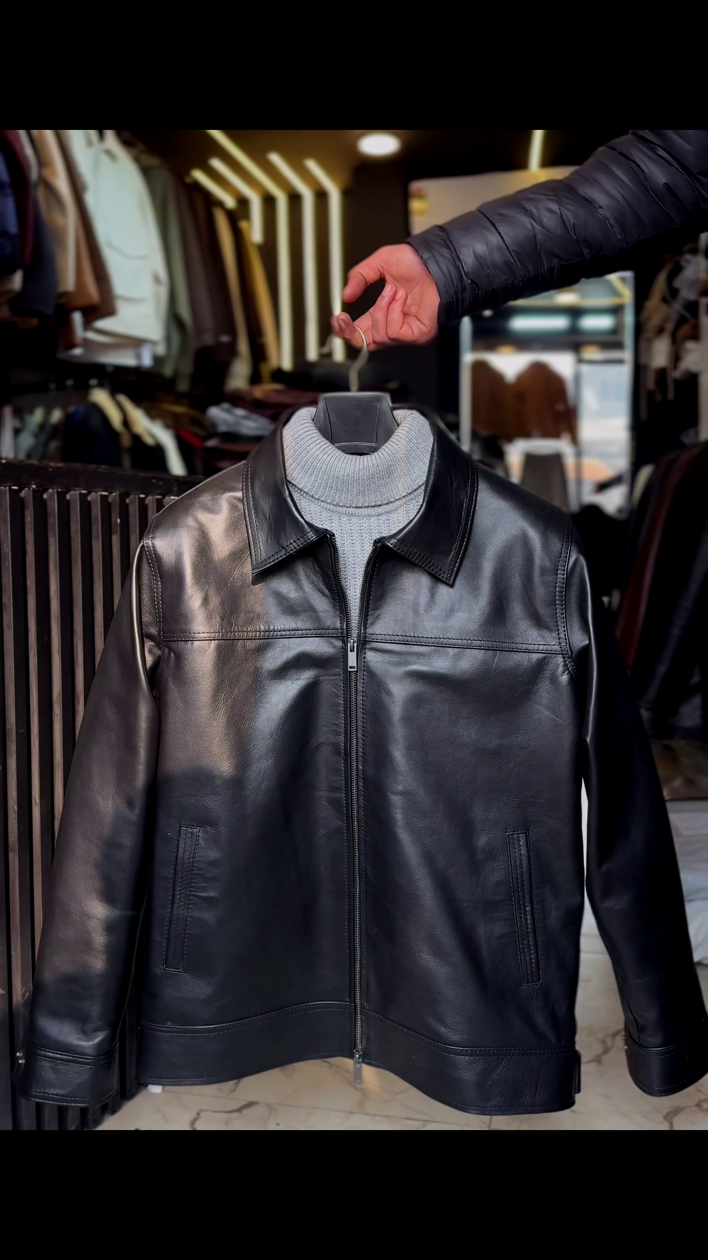 • Hardware: We utilize gunmetal-finished YKK zippers. They provide a muted, masculine contrast to the deep black leather, ensuring the jacket looks sophisticated rather than flashy.