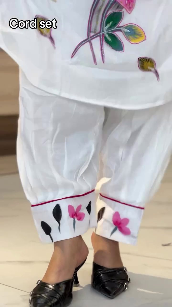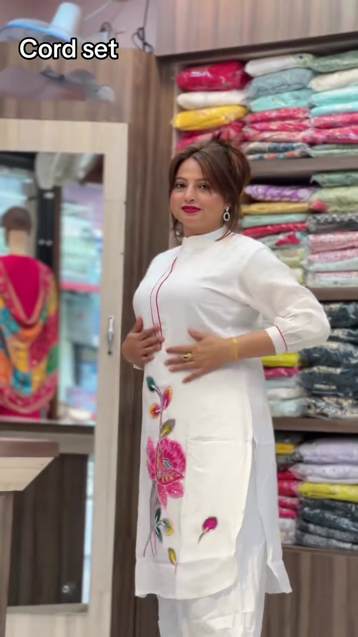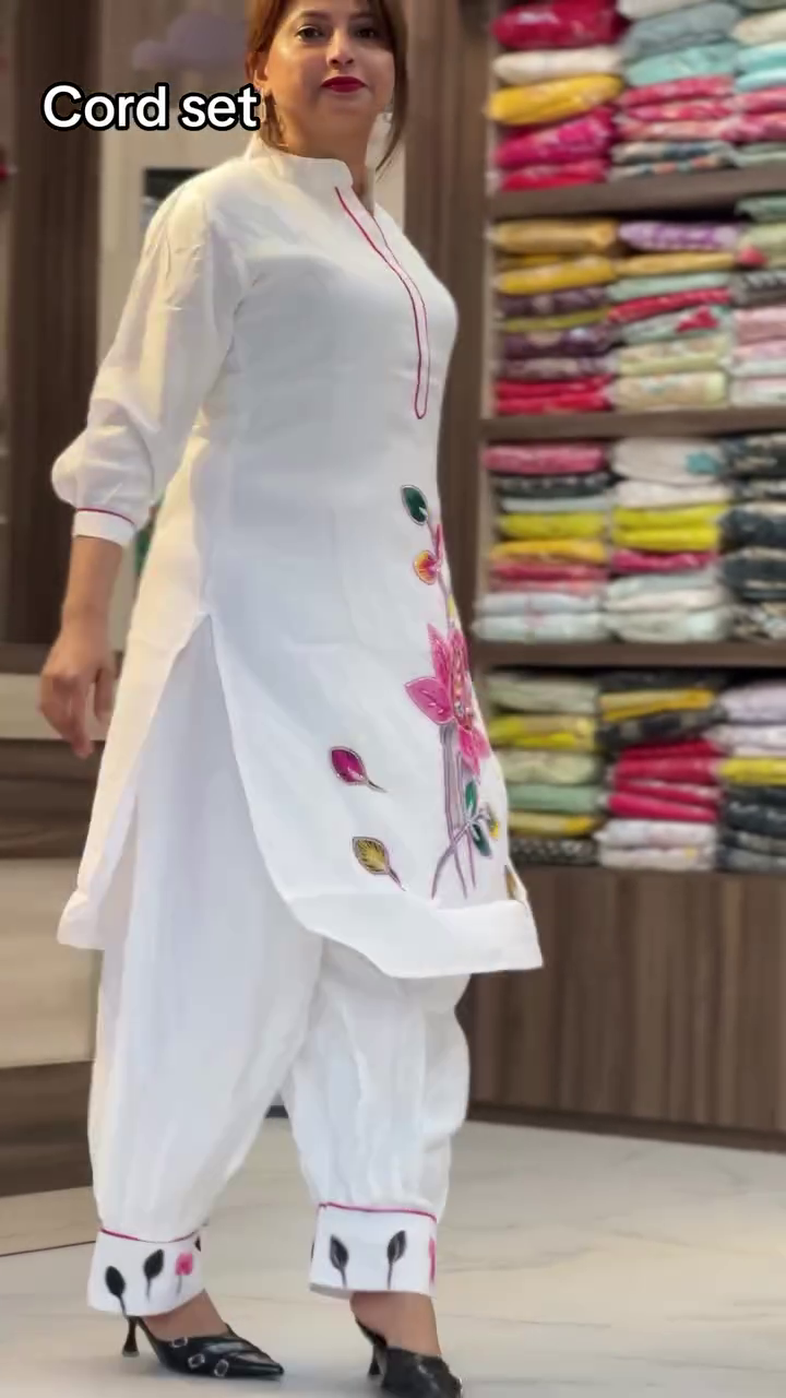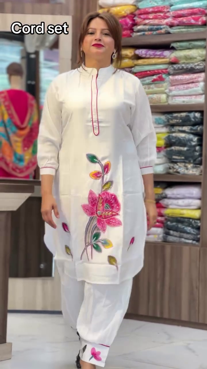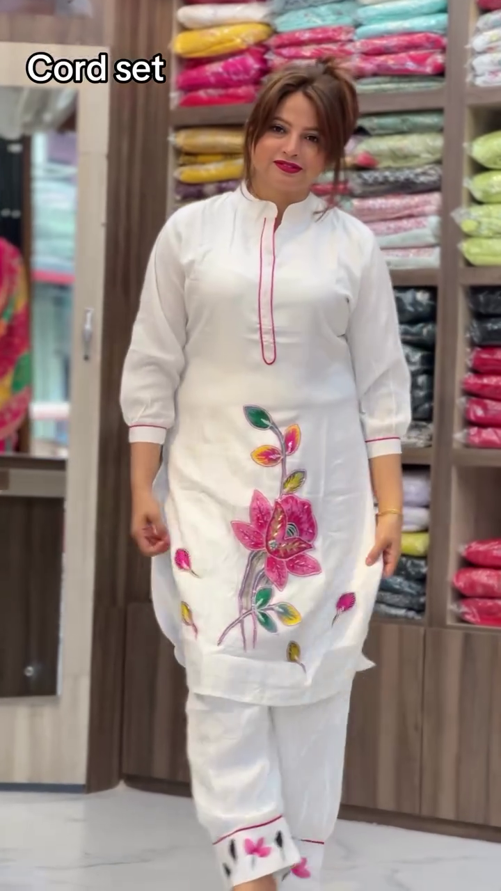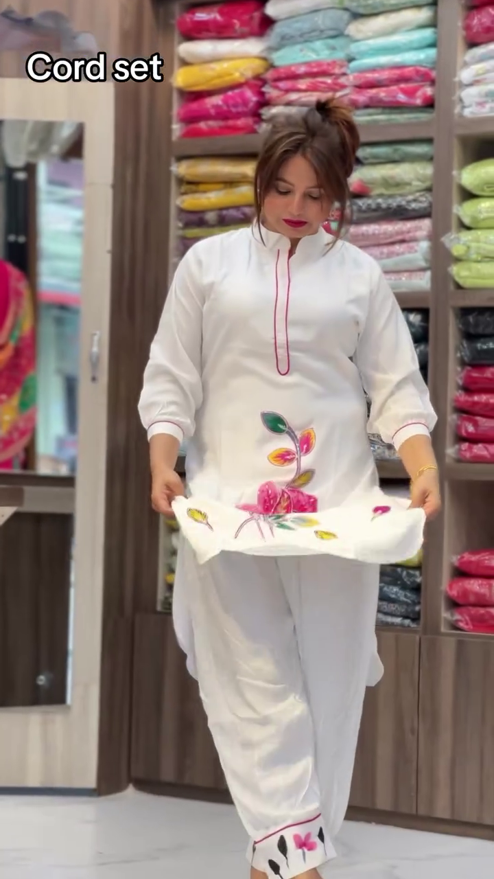 + Free ShippingFeaturing a white pathani tunic in cotton with floral embroidery. It is paired with trousers. Accentuate it with stud earrings and heels for a festive ready-look.