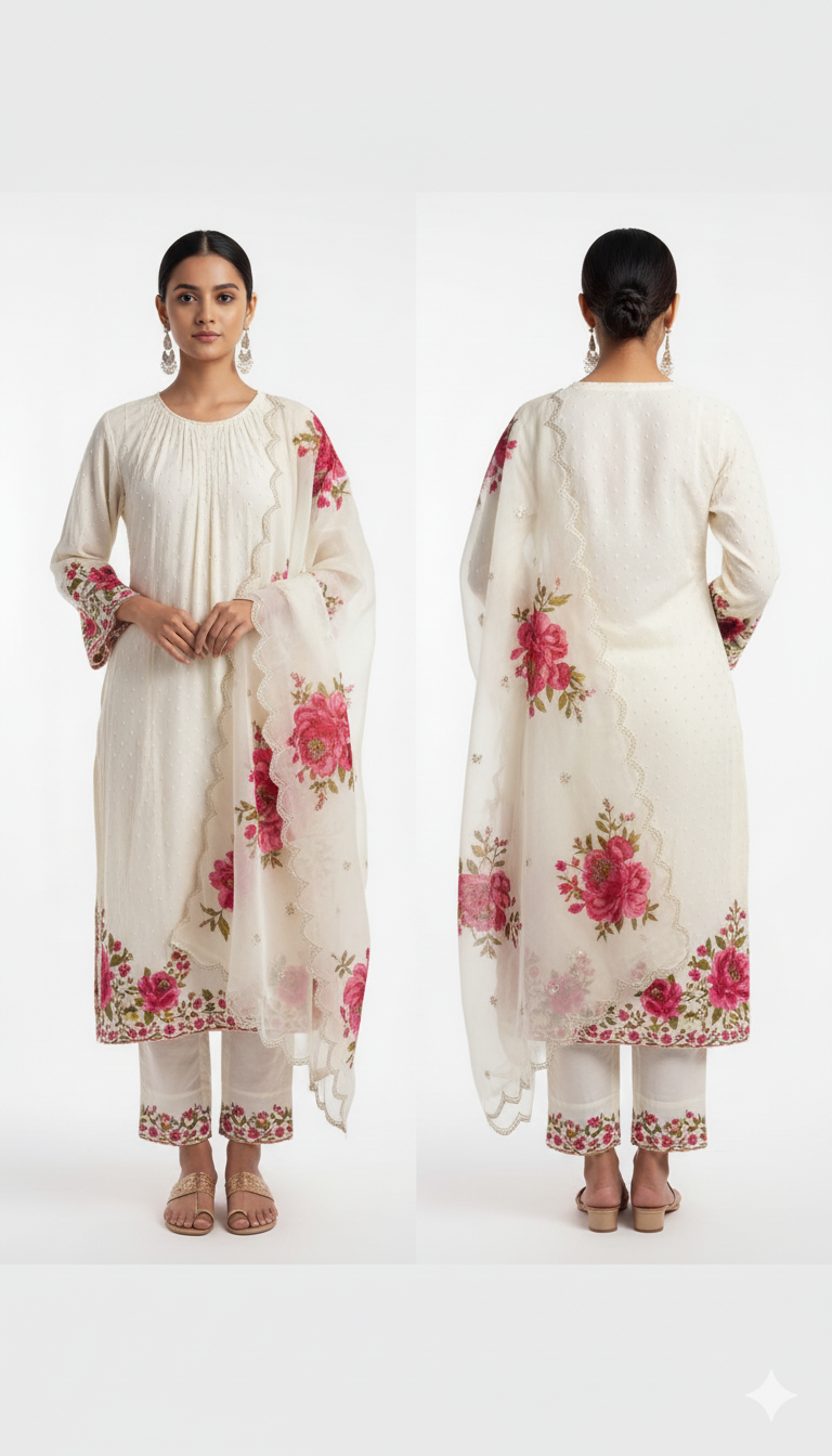 Office & Professional Wear: The classic white color paired with minimal yet sophisticated embroidery makes this set suitable for office or professional settings, maintaining a polished, elegant look.