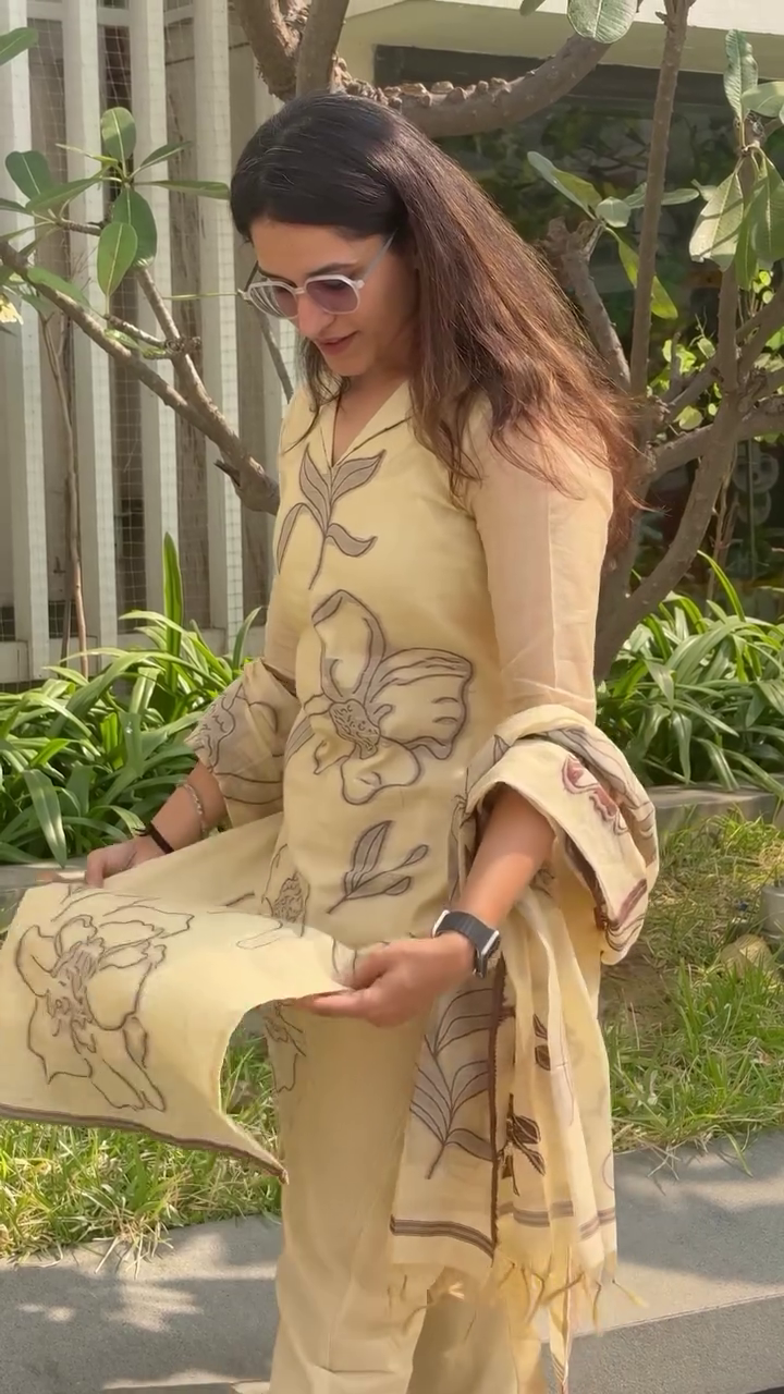 Women Linen Kurta Pant Dupatta Set