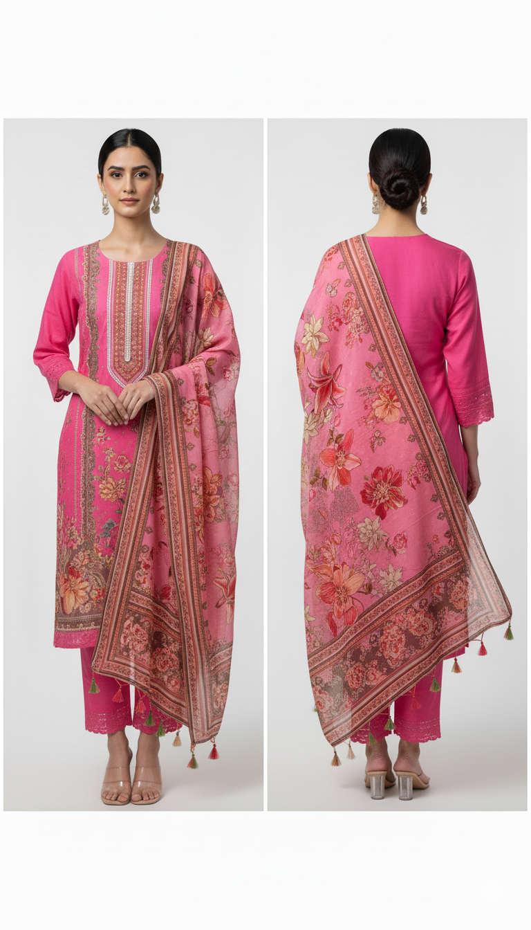 The Women’s Kurta with Printed Dupatta and Pants is a beautifully curated ethnic ensemble designed for the modern woman who seeks style, elegance, and comfort in one outfit. This set effortlessly combines classic Indian wear with contemporary design elements, making it perfect for festivals, casual outings, family gatherings, and semi-formal occasions. With a flattering kurta, coordinating printed dupatta, and comfortable pants, this outfit provides a complete, stylish, and versatile look that’s suitable for women of all ages.